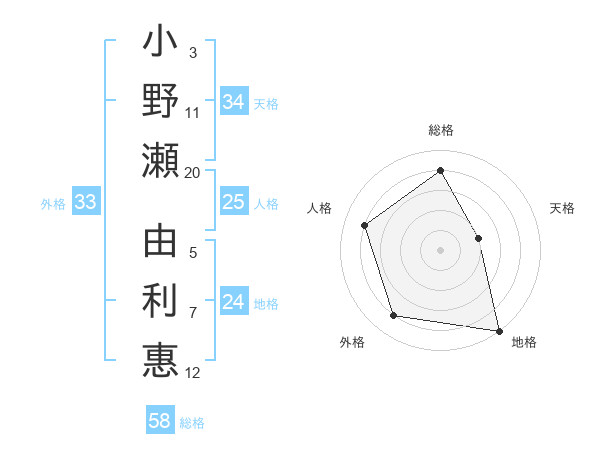 小野瀬 由利惠さんを姓名の画数から五運を鑑定