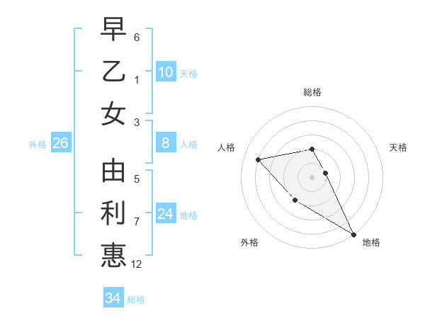 早乙女 由利惠さんを姓名の画数から五運を鑑定