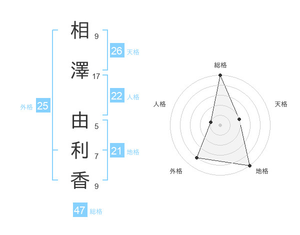 相澤 由利香さんを姓名の画数から五運を鑑定