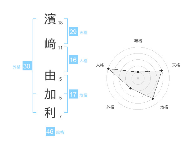 濱﨑 由加利さんを姓名の画数から五運を鑑定