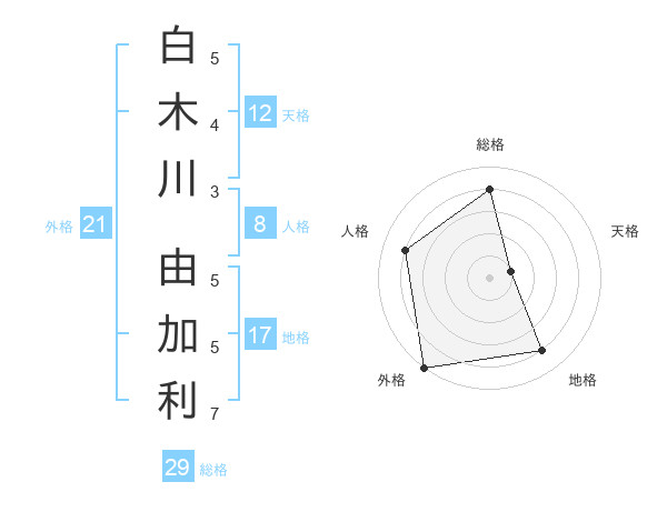 白木川 由加利さんを姓名の画数から五運を鑑定