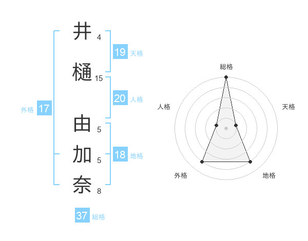 井樋 由加奈さんの総格は37画の5点!