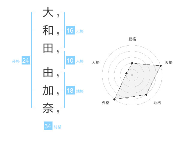 大和田 由加奈さんの天格は16画の5点!