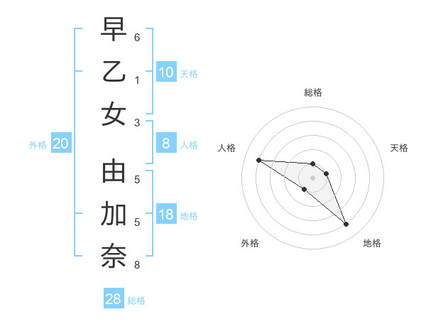 早乙女 由加奈さんを姓名の画数から五運を鑑定