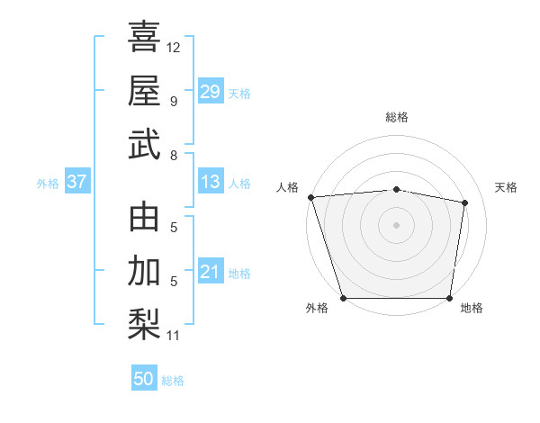 喜屋武 由加梨さんを姓名の画数から五運を鑑定