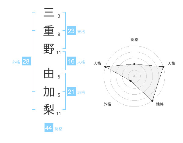 三重野 由加梨さんの総格は44画の2点!