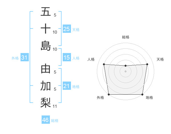 五十島 由加梨さんを姓名の画数から五運を鑑定