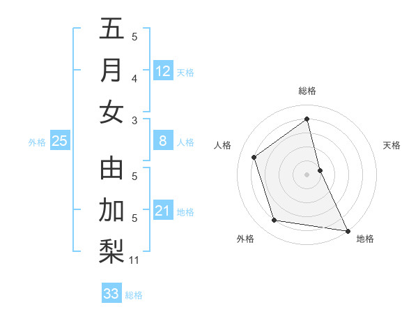 五月女 由加梨さんを姓名の画数から五運を鑑定