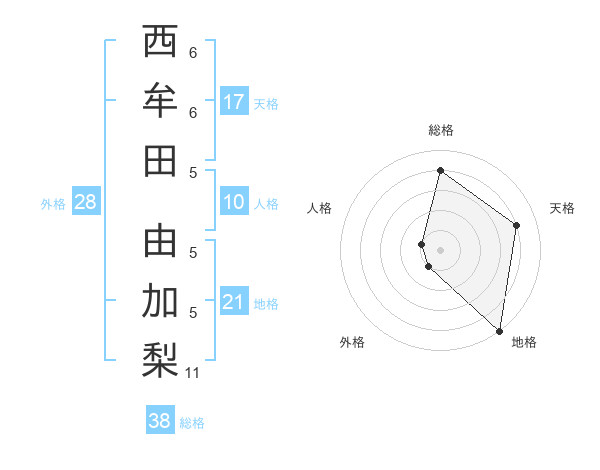 西牟田 由加梨さんを姓名の画数から五運を鑑定