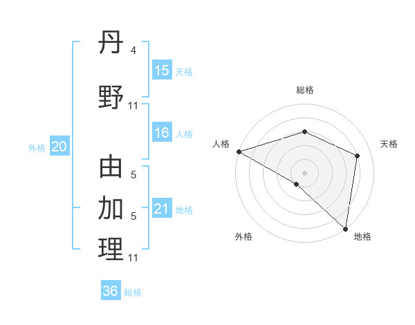 丹野 由加理さんを姓名の画数から五運を鑑定