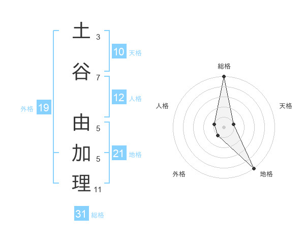 土谷 由加理さんを姓名の画数から五運を鑑定