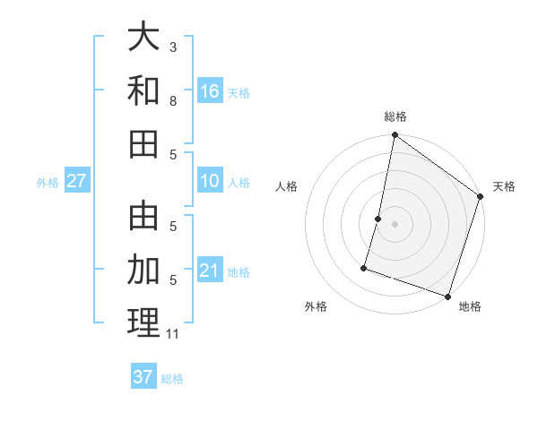 大和田 由加理さんを姓名の画数から五運を鑑定