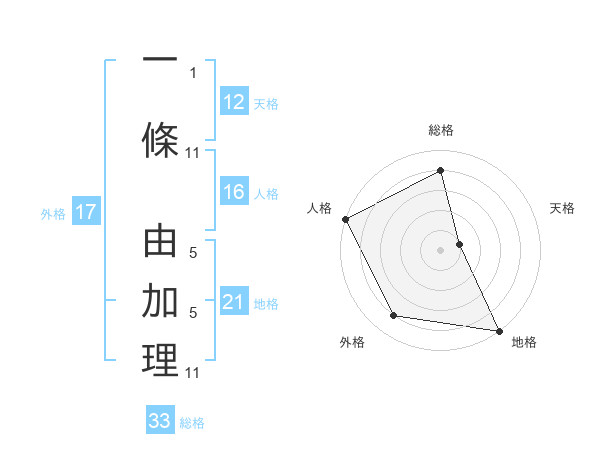 一條 由加理さんの外格は17画の4点!
