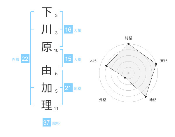 下川原 由加理さんを姓名の画数から五運を鑑定