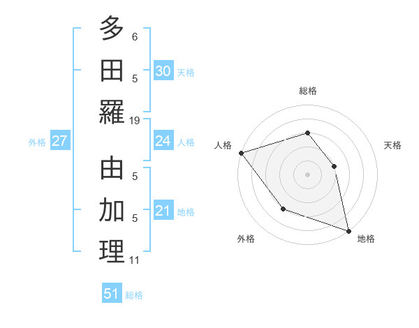 多田羅 由加理さんを姓名の画数から五運を鑑定