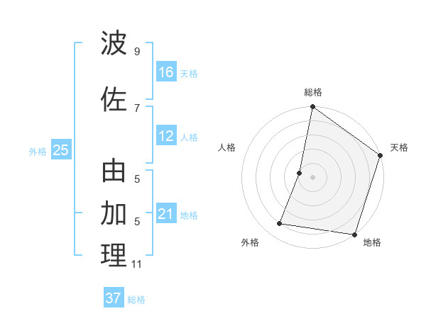 波佐 由加理さんの天格は16画の5点!