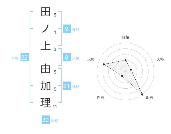 田ノ上 由加理さんを姓名の画数から五運を鑑定