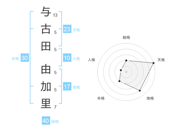 与古田 由加里さんを姓名の画数から五運を鑑定