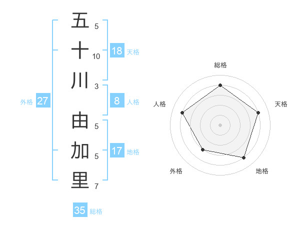 五十川 由加里さんを姓名の画数から五運を鑑定
