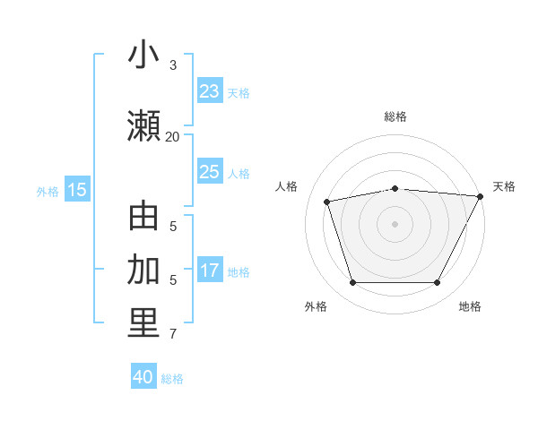 小瀬 由加里さんの天格は23画の5点!