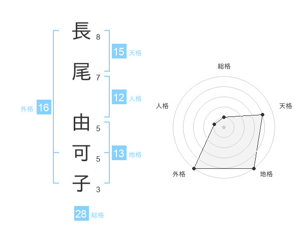 長尾 由可子さんを姓名の画数から五運を鑑定