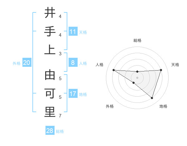 井手上 由可里さんを姓名の画数から五運を鑑定