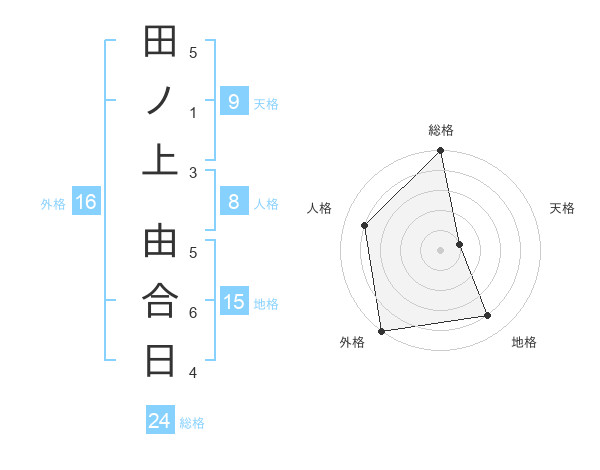 田ノ上 由合日さんを姓名の画数から五運を鑑定