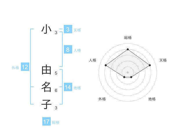 小 由名子さんの総格は17画の4点!