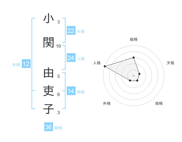 小関 由吏子さんの天格は22画の1点!