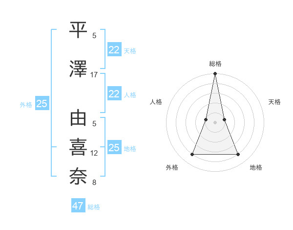 平澤 由喜奈さんを姓名の画数から五運を鑑定