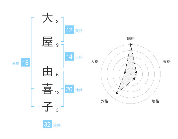大屋 由喜子さんを姓名の画数から五運を鑑定
