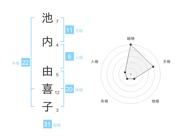 池内 由喜子さんを姓名の画数から五運を鑑定
