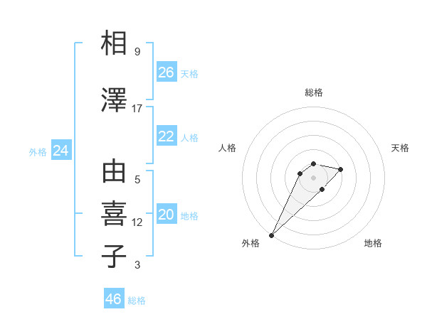 相澤 由喜子さんの外格は24画の5点!