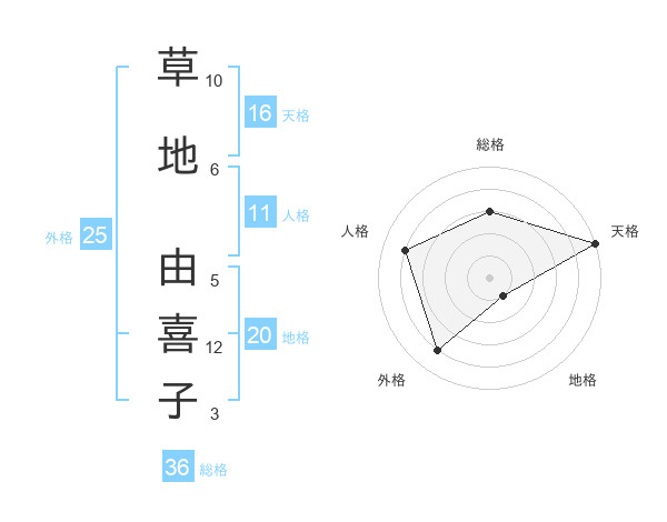 草地 由喜子さんの天格は16画の5点!