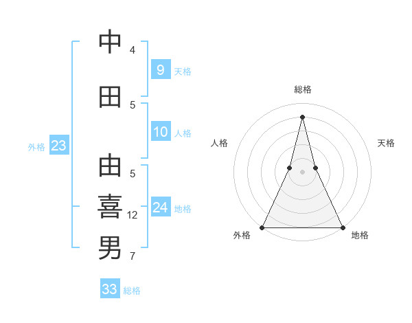 中田 由喜男さんを姓名の画数から五運を鑑定