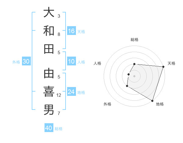 大和田 由喜男さんを姓名の画数から五運を鑑定