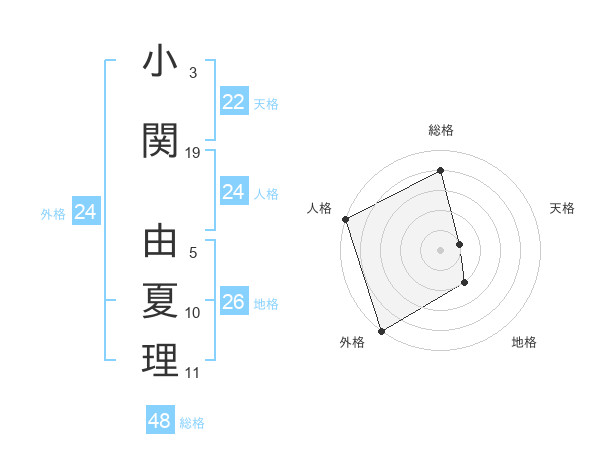 小関 由夏理さんの総格は48画の4点