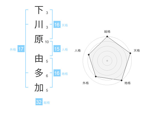 下川原 由多加さんを姓名の画数から五運を鑑定
