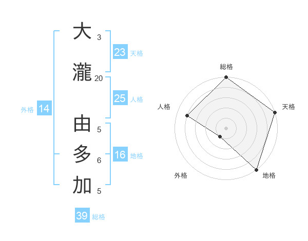 大瀧 由多加さんを姓名の画数から五運を鑑定