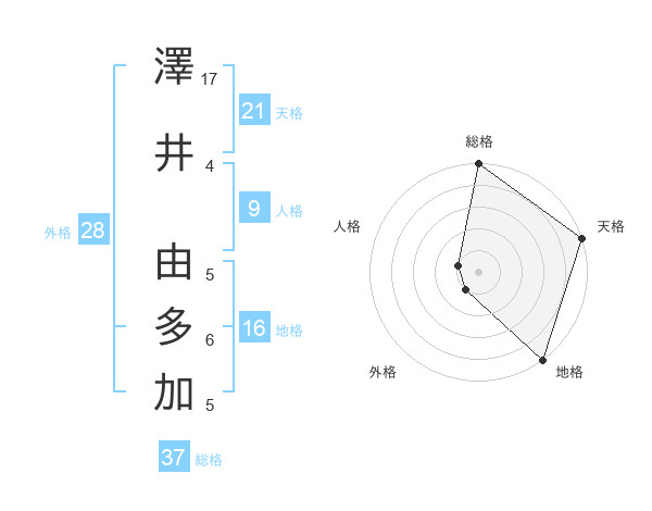 澤井 由多加さんを姓名の画数から五運を鑑定