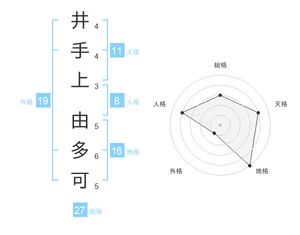 井手上 由多可さんを姓名の画数から五運を鑑定