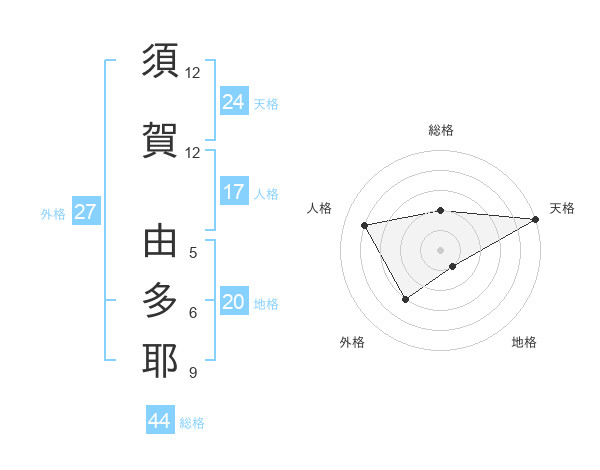 須賀 由多耶さんの天格は24画の5点!