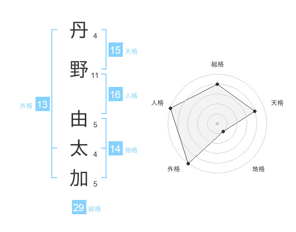 丹野 由太加さんの外格は13画の5点!