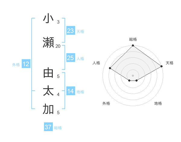 小瀬 由太加さんを姓名の画数から五運を鑑定