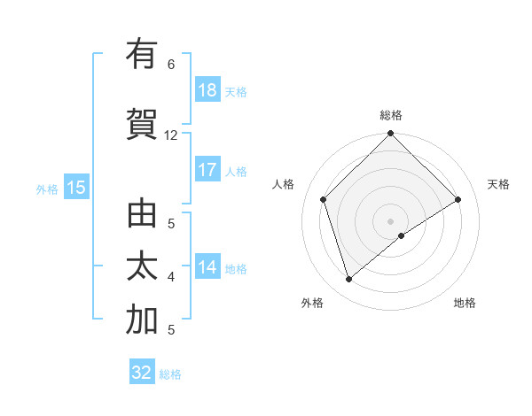 有賀 由太加さんの天格は18画の4点!