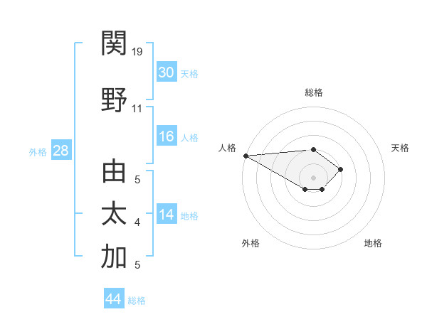 関野 由太加さんの総格は44画の2点!