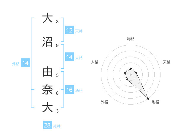 大沼 由奈大さんを姓名の画数から五運を鑑定