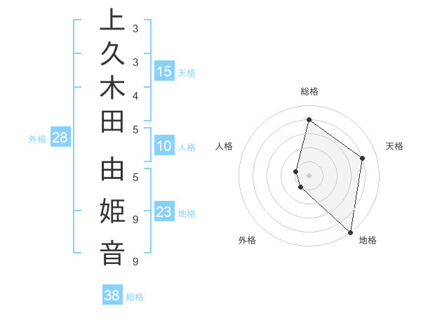 上久木田 由姫音さんを姓名の画数から五運を鑑定