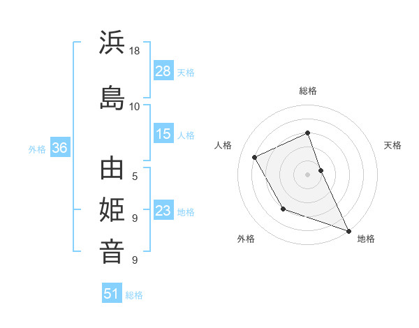 浜島 由姫音さんを姓名の画数から五運を鑑定