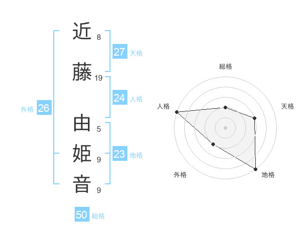 近藤 由姫音さんの総格は50画の2点